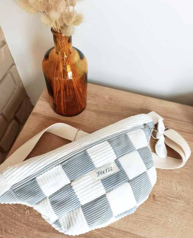 J'ai créé cette sacoche banane Patchwork avec des chutes de tissu, pour ne rien gaspiller.