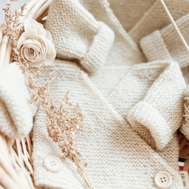 Brassière bébé en pure laine 100% naturelle, provenant de la ferme GAEC de la Boule d'or, dans le Loiret. 🇨🇵