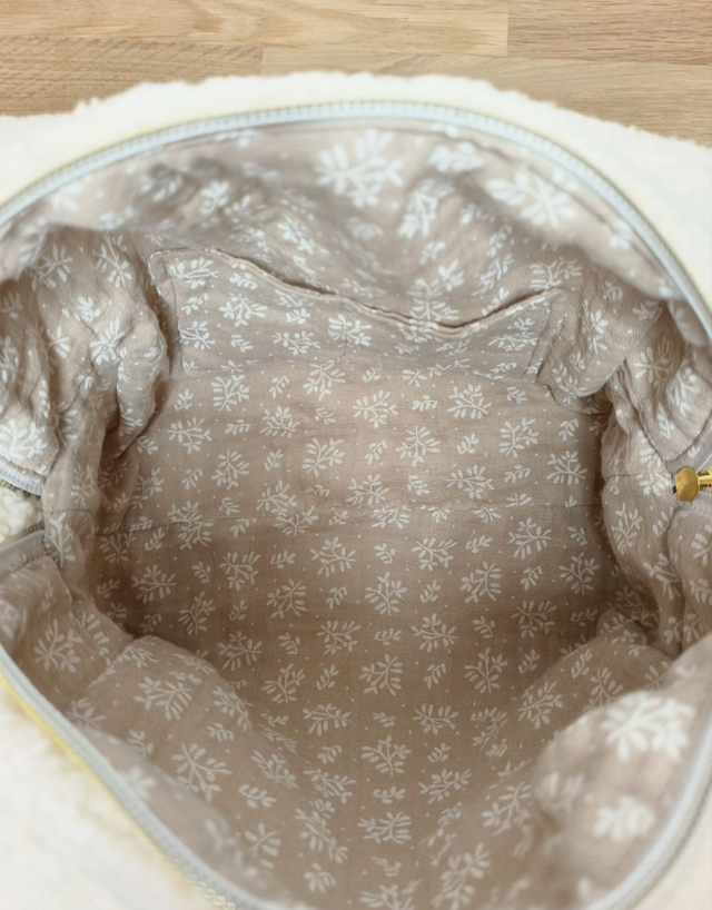 Poche intérieure et petit nœud décoratif pour la fermeture.