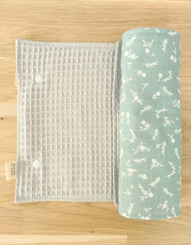Essuie tout lavable, avec une face en coton et une face en nid d'abeille.